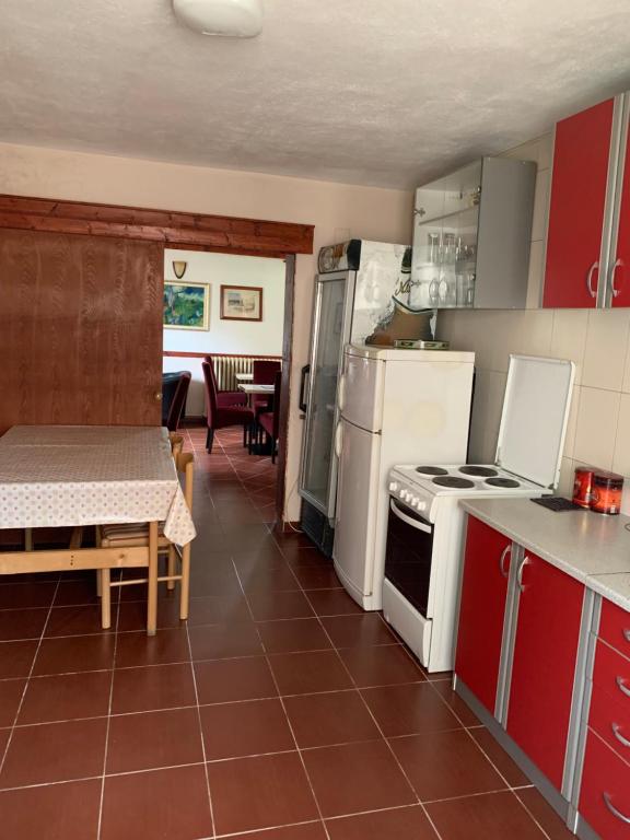 kuhinja, rerna, ploča za kuvanje, sto za ručavanje, čaše za vino